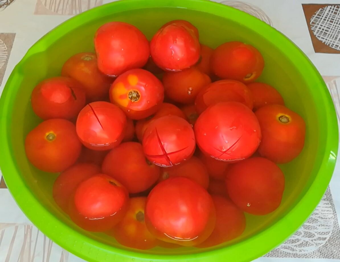 Давно перешла от маринования томатов обычным способом на этот рецепт. Хоть у него и имеется один большой недостаток: как только банка открывается, то она сразу же пустеет. Поэтому не стоит надеяться, что эти помидоры можно будет использовать для борща, в заправки и подливки, соусы... Для этого надо закрывать спелые помидоры специально вот по этому рецепту. Чтобы реализовать рецепт маринования спелых томатов "Голодеры" потребуется на 3-х литровую/ 1,5 литровую банки (буду указывать через дробь): Для справки: в 1 стандартной столовой ложке помещается 30 г соли и 25 г сахара. Чтобы не ошибиться, лучше пользоваться электронными кухонными весами! Ниже в видео я показываю этот рецепт (2 мин 30 сек): Томаты для этого рецепта желательно брать круглые, диаметром таким, чтобы они пролезли в горло банки. Первоначально все томаты надо помыть, сразу же отбирая от общей массы те плоды, которые имеют вмятины, разрывы. Если эти повреждения не отдают кислым запахом, то их можно использовать. Если ж