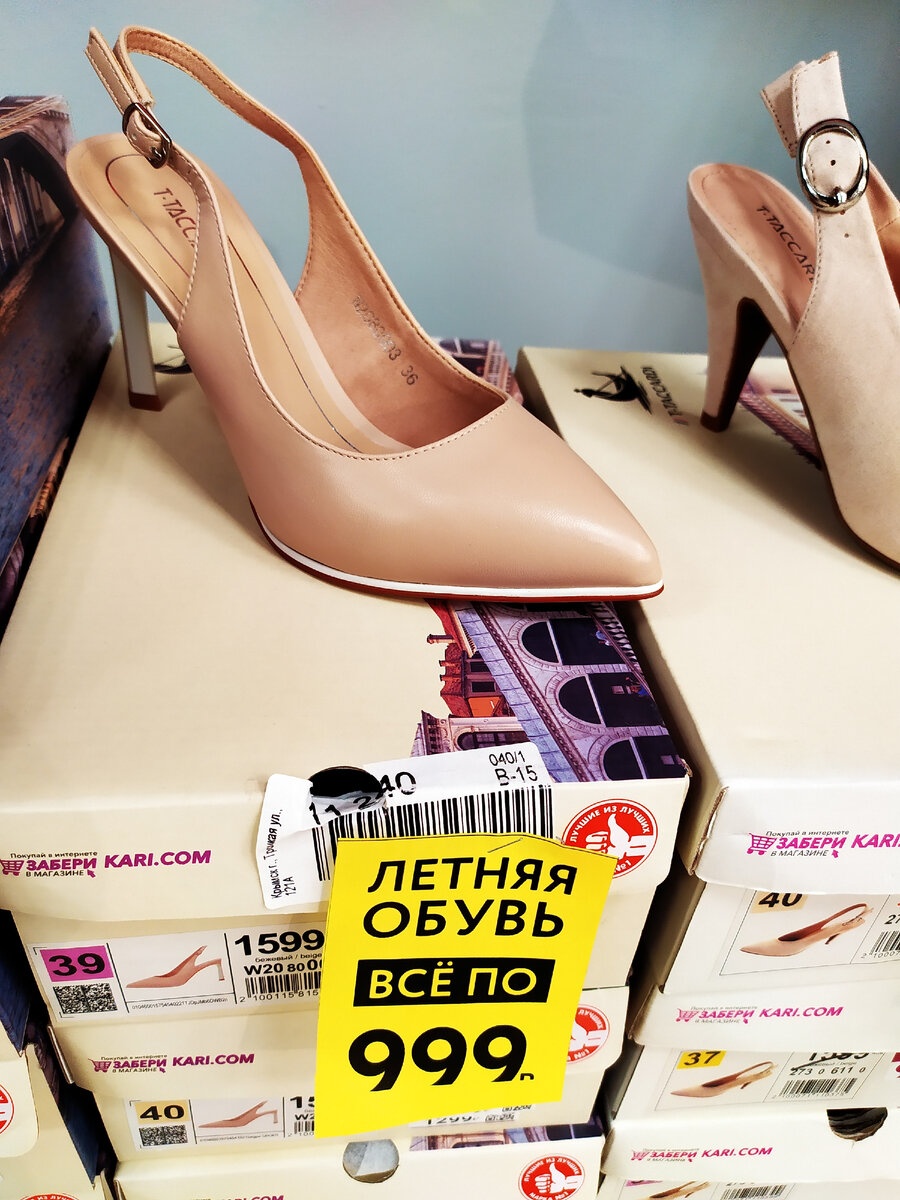 Посетив сегодня один из моих любимых магазинов KARI, я заметила везде жёлтые ценники с летней распродажей. Практически все босоножки, сандалии и шлёпанцы подешевели на несколько сотен рублей, что не только мне очень понравилось. И в этом обзоре хочу предложить вашему вниманию летнюю обувь, которую я заметила в это посещение магазина обуви KARI. Бежевые босоножки на шпильках и острым носком. Цена 999 рублей. Чёрные босоножки на шпильках. Цена 599 рублей. Красные босоножки на тонкой подошве со шнурками. Цена 699 рублей. Босоножки бирюзового цвета на высоком устойчивом каблуке. Цена 599 рублей. Босоножки с белым цветочным рисунком на шпильках и острым носком. Цена 599 рублей. Бежевые сандалии на танкетке. Цена 999 рублей. Чёрно-белые босоножки на шпильках. Цена 599 рублей. Голубые сандалии на толстой подошве. Цена 399 рублей. Белые сандалии всего 399 рублей. Вот ещё такой вариант белых сандалий с широкими ремешками. Цена 399 рублей. Белые кроссовки с красным рисунком и шнурками. Цена 999
