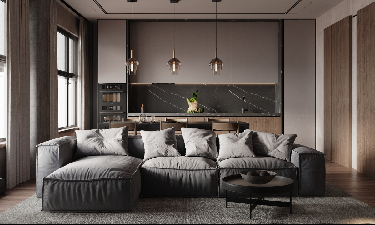 Благодаря выбранной эстетике минимализма, приглушенным тонам и лаконичности интерьер апартаментов дарит спокойствие и комфорт. Гости обязательно оценят утонченный вкус хозяев этого гармоничного пространства.