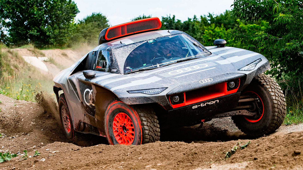 Немцы показали новый внедорожник, в котором использовали технологии из гоночных серий Formula E и DTM Компания Audi представила новый гоночный внедорожник под названием RS Q E-Tron, разработанный для участия в ралли-рейде "Дакар". Автомобиль получил гибридную силовую установку, в которой использовали технологии машин чемпионата электрокар Formula E и ккзовноц серии DTM, где соревнуются автомобили с традиционными бензиновыми. В движение внедорожник приводят два электрических двигателя от болида Audi FE07 из Formula E-по одному на передней и задней оси. Агрегаты, в сумме выдающие 670 л. с.,питаются от комплекта литий-ионных аккумуляторов ёмкостью 50 киловатт-часов. При этом в состав силовой установки вошел 2,0-литровый бензиновый мотор от автомобиля из DTM, которой служит в качестве генератора для подзарадки батарей во время движения. Разработчики отметили, что двигатель работает в диапазоне от 4500 до 6000 об/мин "в режиме". Топливо поступает из бака на 295 л,расположенного за передне