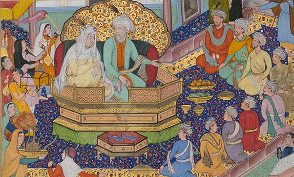 Во-первых, давайте кое-что проясним: моголы или Тимуриды любили ассоциироваться с “монголами” в смысле Монгольской империи. Они называли свой " Дом’ или династию гурханами, ‘родственниками’, то есть теми, кто вступил в брак с семьей Чингисхана. Это было ядром их номинальной легитимности. Могольская миниатюра Чингисхана, его жены Бортэ и их сыновей. Представлялся великим правителем, "точно таким же", как индийский падишах, или, скорее, наоборот: падишах Моголов называл себя в честь Чингисхана. Моголы продолжали претендовать на гегемонию над Мавераннахром, их связь со старым имперским наследием, и в их царской мифологии не было фигуры более значимой, чем Чингисхан. Сам Тамерлан боготворил его и (по крайней мере, публично) поддерживал почти религиозное почтение к его потомкам, следя за тем, чтобы его правление в качестве амир-э-кебира (Великого полководца) всегда номинально осуществлялось под началом или от имени Чингисханского князя, в котором текла “золотая кровь” Чингисхана. Из всех пр
