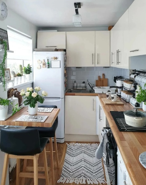 В такой небольшой кухне может возникнуть необходимость организовать самые различные зоны. Может, конечно, и не возникнуть, если вы, конечно же, не собираетесь на ней ничего варить или жарить на огне, но если вам нужно готовить много домашней еды, то подумайте, как распланировать кухню. Итак, вы решили, что кухню вам необходимо увеличить. Что вы для этого предпримете? Конечно же, вы должны это продумать. Можно приобрести целый гарнитур мебели и расставить там все, что вам необходимо. А можно попытаться сделать это по-другому. Положите 1 кв. метр на периметр помещения, чтобы в этом месте можно было поставить удобную для вас обеденную группу, под которой нужно выделить место для хранения утвари или размести картотеку. В маленьких помещениях нужно продумать каждый сантиметр, поэтому продумайте, где и что будет находиться. Если ваша комната узкая, то вам может понадобиться кухонная мебель, которая сделает ее более просторной. Конечно же просторнее, будет смотреться кухня, которая выполнена