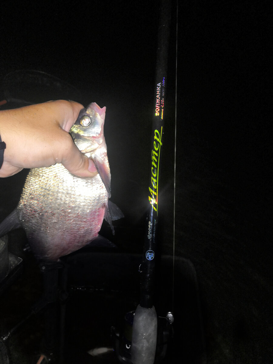 Погода лютует, ловить днем из-за жары совершенно не хочется. Единственный выход - ночные рыбалки, которые в последнее время даются тяжеловато. После дневной смены решил посидеть ночку на Кривуше, в надежде половить леща. Забегу немного вперёд, надежда оправдалась на все 200%. Хотел приехать на берег максимально рано, на сколько это было возможным, но к сожалению на берегу был только в районе 23 часов. По быстрому разложился, замешал прикормку, промерился и закормил точку. Времени на рыбалку очень мало, поэтому со старта много кормить не стал. 5-6 кормушек, чтобы просто обозначить точку. С первого заброса получаю обсос червя, но поклевки не увидел. Меняю червя на опарыша и через несколько минут получаю долгожданную поклевку с отстрелом. Первый лещик в садке, дело пошло. Поклевки следовали с интервалов в 3-5 минут, но поймав 6-7 рыб активность немного упала. Начинаю экспериментировать с ароматикой и после дипования насадки ессенцией Крупный Лещ, получаю поклевку не успев взвести вершин