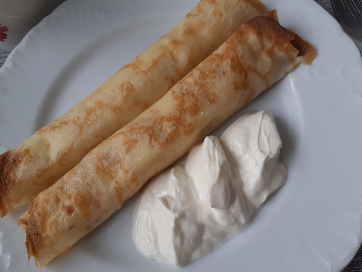 Доброго воскресного утра друзья! Все мы знаем, что творог очень полезен, но накормить им семью сложно) Ну а вот такие блинчики с творожком разлетаются на ура! На восемь блинов берём две пачки творога в брикетах (у меня 5%), добавляем одну столовую ложку сахара и одно яйцо. Кладём творог на блинчик и заворачиваем его в трубочку. 15 минут в духовке при температуре 150 градусов и вкусный полезный завтрак готов. Подаём с чем душе угодно, у меня со сметаной! Приятного аппетита и отличного дня!))