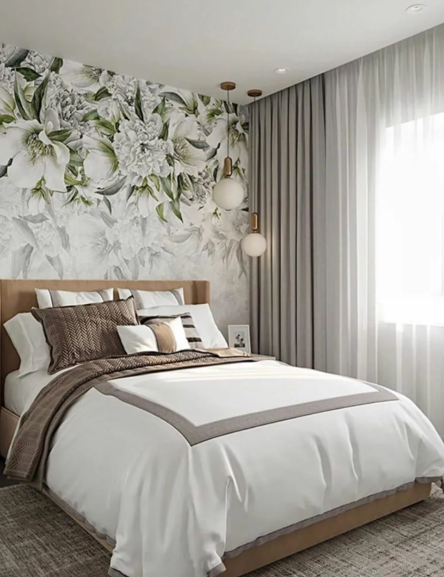 При выборе варианта дизайна интерьера спальни нужно руководствоваться не только личными желаниями, но еще и совершенно объективными требованиями к нему. Одной из проблем, которые в данном случае возникают, является нахождение оптимального варианта обоев. Их на рынке немало, но определить нужно только с одними. В процессе приобретения этого материала нужно, в первую очередь, думать о том, насколько он экологичен. Наиболее качественными уже очень долго считаются бумажные обои. Все же они изготавливаются из полностью натурального сырья, очень хорошо пропускают воздух, регулируют влажность в спальне. Конечно, кому-то может захотеться использовать и другой вид обоев. Но так ли это рационально? Например, виниловые характеризуются большой прочностью и заметной плотностью. Но придется сказать о том, что их поверхность зачастую практически не имеет пор, поэтому и воздух сквозь подобное покрытие не проходит. Интересным вариантом для спальни может стать использование жидких обоев. Они тоже имеют