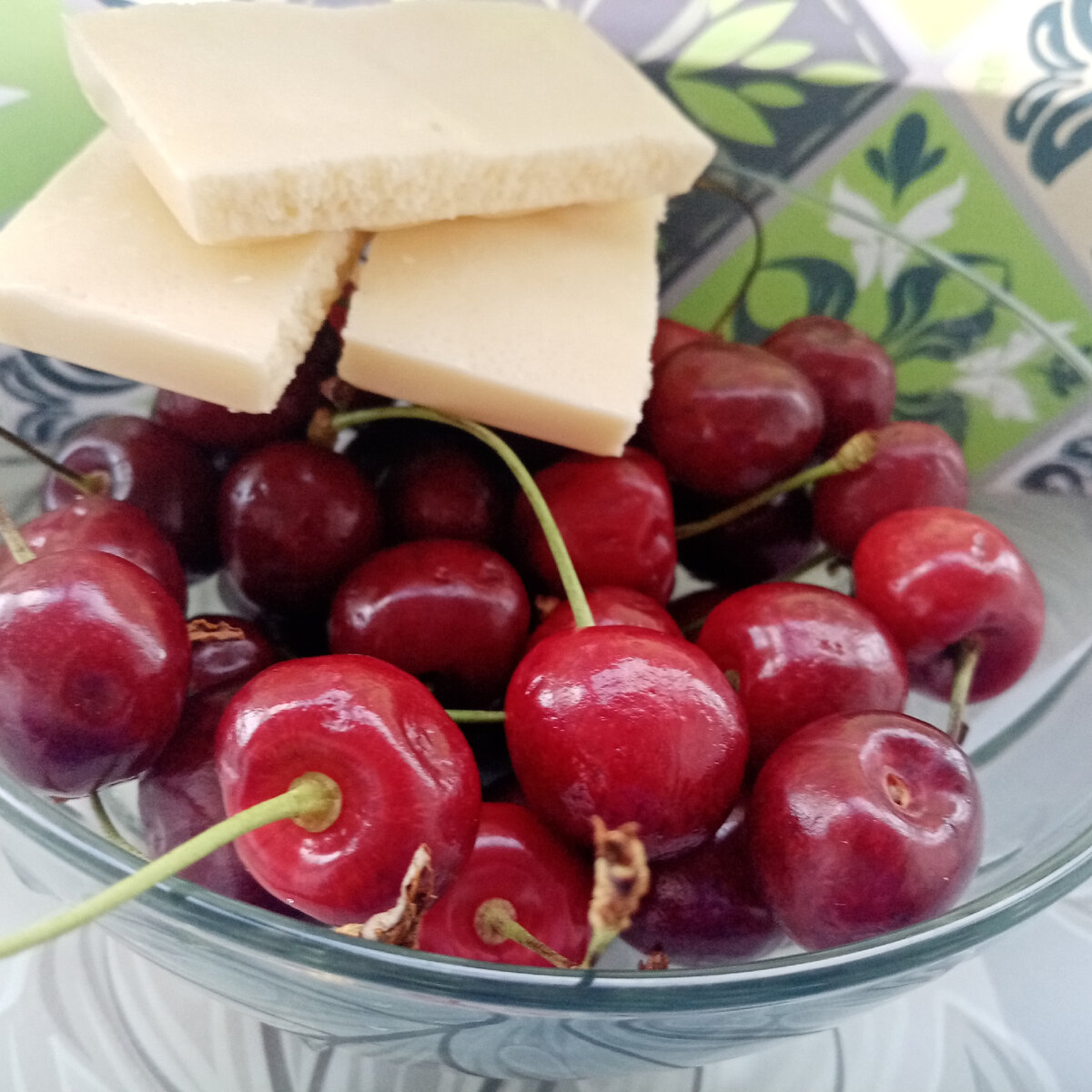 Список продуктов: 1 кг ягод черешни без косточек 100 грамм белого шоколада 500 грамм сахарного песка 10 грамм пектина Приготовление: Промойте черешню, освободите ее от косточек. Ягоды смешайте с сахарным песком и пектином в просторной, подходящей для варки посуде. Черешню с сахаром на среднем огне доведите до кипения. Прокипятите 5 минут, помешивая. Снимите кастрюлю с огня, добавьте шоколад. Размешайте варенье до полного растворения шоколада, при желании измельчите блендером. Варенье горячим разлейте в чистые, ошпаренные кипятком банки и закрутите железными крышками.