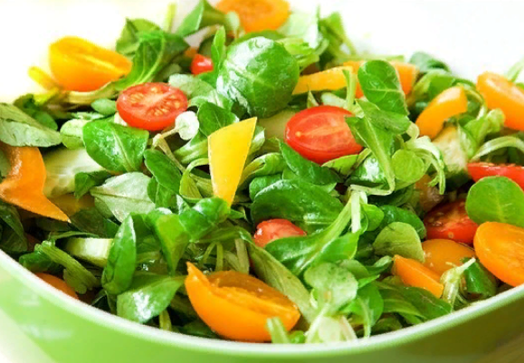 ИНГРЕДИЕНТЫ l 2 ПОРЦИИ ИНСТРУКЦИЯ ПРИГОТОВЛЕНИЯ l 15 МИНУТ 1. В маленькой миске смешайте нарезанный шалот, тертый имбирь, измельченный чеснок, рисовый уксус, кетчуп, воду, растительное масло и соевый соус. 2. Очистите перец от семян и нарежьте на тонкие полоски. Выложите в ледяную воду на некоторое время, пока кусочки не станут сворачиваться. Это займет несколько минут. 3. В миску выложите салатные листья и смешайте с 4-6 ложками заправки. посолите. Разложите салат по 2 тарелкам, сверху выложите половинки помидоров, тонко нарезанный огурец и ломтики перца. ПРИЯТНОГО АППЕТИТА! Делитесь своими результатами в комментариях