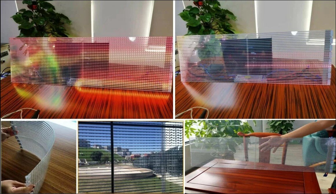 Introducing a new thin and light transparent LED display - a high-tech solution for installation on glazed surfaces. The novelty allows you to turn a shop window, entrance lobby, glass partition or ordinary window into a unique advertising medium that is more valuable than standard advertising spaces. 1. You can use surfaces inaccessible to conventional media (glass). Transparent LED screen is an affordable innovation for businesses of any format and scale. The "transparent" base gives the impression of an image floating in the air. Such advertising will attract much more attention and it can be more expensive to sell airtime on such a medium. 2. Pays off quickly due to the unusual effect and attractiveness for advertisers. High quality aluminum is used for the production of transparent screen blocks. This made it possible to significantly lighten the design. Screen weight less than 3.5 kg / m2. The thickness of the display is 1-3 mm. That is, in fact, this "videotape" is thin, light,