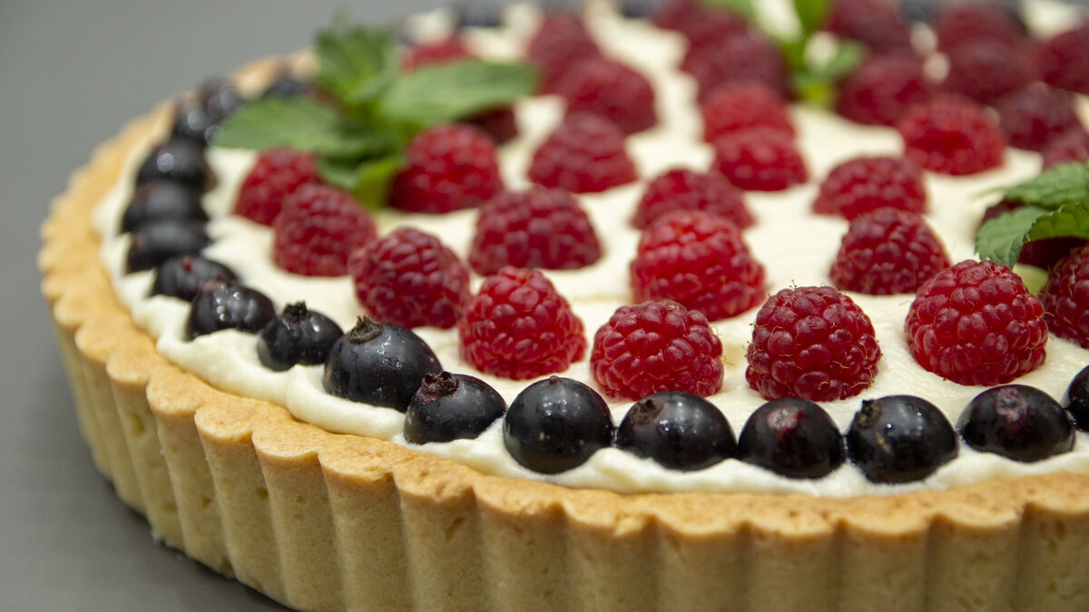 Украшаем любой сезонной ягодой или фруктами. У меня сегодня будет чёрная смородина и малина.