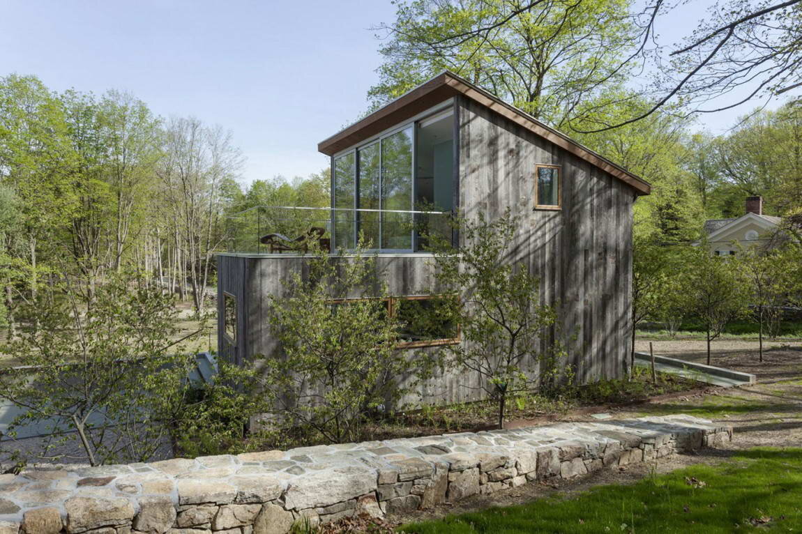 Этот уютный и элегантный дом стал «вторым домом в семье» и разработан как домик для гостей. При этом по своим размерам и планировке он вполне подходит под категории дачных домов для загородного отдыха. У него есть полноценный подвал, открытая общая зона с хорошим функциональным разделением на кухню, столовую и гостиную с выходом на открытую террасу. На втором этаже расположена просторная спальня с ещё одной террасой-балконом. Не смотря на простой внешний вид, у дома в целом получилась цельная архитектура с очень тёплым и уютным интерьером. Особенно хорошо получилось сочетание традиционных и современных материалов: здесь есть и обработанный вторичный дуб, и кортен, и чёрная сталь, и матовое стекло, и традиционные белые поверхности. Дополнительным бонусом стала эффектная металлическая лестница. Для специалистов могут пригодится чертежи некоторых узлов и деталей. Название: Загородный дом (Country Home)