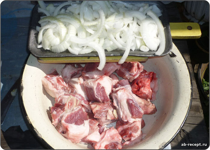 Сегодня представляю ещё одно вкуснейшее блюдо - плов. Готовить его будем исключительно из баранины в казане на костре. Рецепт приготовления на дачной печи немного сложнее, т. к. надо виртуозно регулировать открытый огонь и поддерживать необходимую температуру под казаном. Однако, если все сделать правильно, плов получается невероятно рассыпчатым и вкусным. Для блюда потребуется: 1. Для лучшего качества плова необходимо выбрать жирную ножку барана и порубить ее порционными кусками. Лук и морковь крупно нарезать. 2. На среднем огне обжариваем баранину в собственном жире, который будет обильно вытапливаться. Если вы взяли правильные куски мяса, если жира совсем мало, добавляйте подсолнечное масло. 3. Когда мясо подрумянится, добавляем сначала лук, а затем морковь, и жарим еще несколько минут, пока овощи не осядут. 4. Мясо готово, добавляем специи, чуть-чуть подсаливаем и добавляем рис. Рис нужно равномерно распределить поверх мяса, но не перемешивать. 5. Разложив рис, даем ему