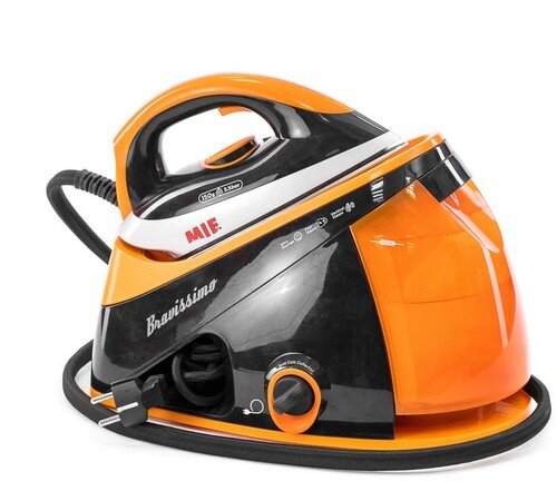 Яркий и стильный парогенератор итальянского бренда считается одним из лучших за оптимальное соотношение стоимости и характеристик. Подошва выполнена из нержавеющей стали, что придает ей долговечность и позволяет отлично скользить по любым материалам. Интенсивность пара достаточная, чтобы проглаживать постельные комплекты и полотенца, сложенные в четыре слоя. Также прибор оснащен функцией сухой глажки и вертикального отпаривания. Покупатели хвалебно отзываются о парогенераторе, отмечают его удобство и хорошую скорость глажки, но некоторые сетуют на небольшой резервуар и отсутствие автоотключения.