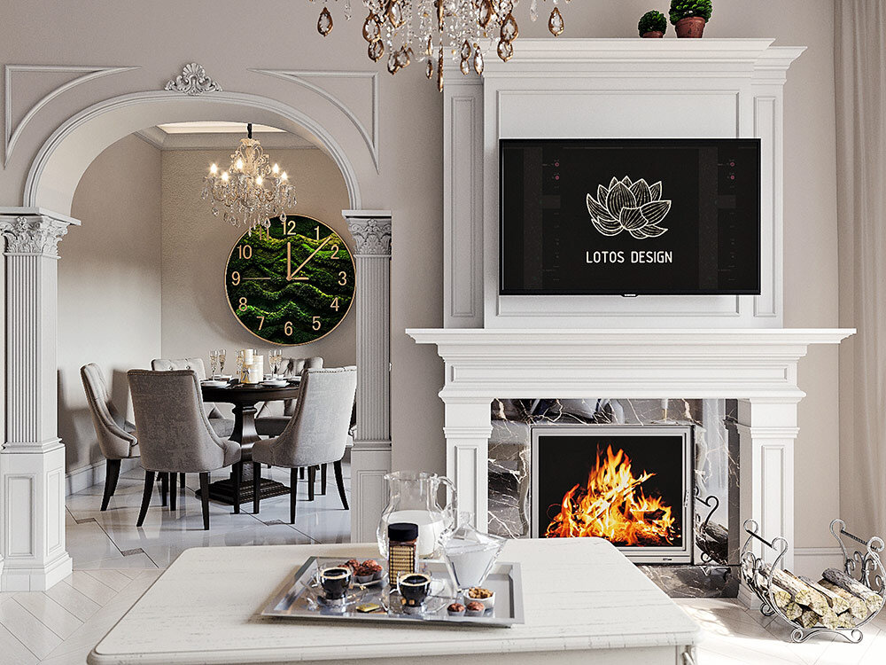 Для интерьера в стиле неоклассики с элементами ар-деко использовали исключительно натуральные материалы.