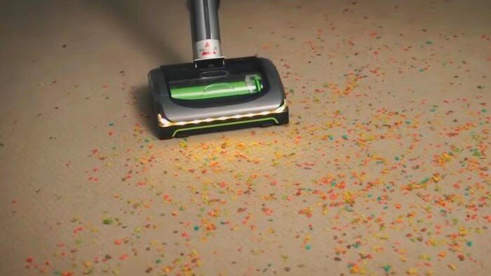 Гигиеничная очистка контейнера и щетки, минимальное соприкосновение с грязью, удобное управление на рукоятке, позволяющее на ходу регулировать мощность прибора, подсветка области уборки.