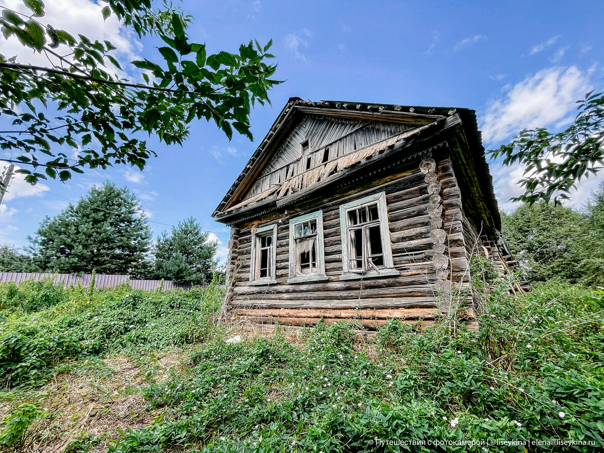 Ещё совсем недавно в аналогичных домах жили почти все деревенские жители. Как говорится, стандартный проект - сруб пятистенок, в котором жила вся семья. Некоторым домам везёт: их перестраивают, обшивают сайдингом, они превращаются в дачи. А каким-то нет. И порой остаются целые деревни из заброшенных домов. Постепенно природа берёт своё, и теперь, для того чтобы попасть в дом, приходится продираться через заросли крапивы выше человеческого роста. Но любопытство сильнее крапивы. Поэтому я героически пробралась к крыльцу и смогла заглянуть внутрь. Из сеней - вход в саму избу. Справа был погреб и, видимо, какой-то аналог кухни. Слева отгорожена часть с печкой. Возможно, чтобы можно было там помыться. Ну а если пройти прямо, то попадаем в главную и единственную комнату. Три окна, стол и два дивана. Довольно уютно, но как тут могло проживать больше двух человек, совершенно не понятно. На стенах даже осталось немного обоев. В этом доме даже телевизор был. Только до него уже добрались ва