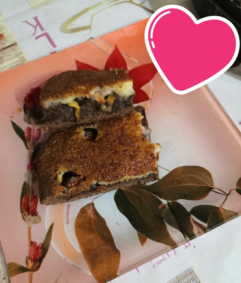 Брауни - знаменитый в Канаде и Америке шоколадный десерт, представляет собой сочетание шоколадного пирога, пироженного и пудинга. Готовить очень просто, быстро. Рецептов очень много, мне нравится именно этот: не слишком затратно, фрукты придают свежесть, ну и это находка для любителей шоколада. Берём миску, которую можно поставить в мироволновку, разламываем в неё плитку шоколада, добавляем сливочное масло Накрываем специальной крышкой, чтобы масло не забрызгало нам всю мироволновку, и ставим в СВЧ печь буквально на минуту. Можно конечно растопить и на водяной бане, но я делаю в микроволновке, нужно же пользоваться благами цивилизации. Так и растапливается быстрее, и остывает тоже быстро. Перемешиваем венчиком, оставляем остывать. Занимаемся кремом. Берём манку, кефир, сахар, сгущёнку, ванильный сахар, перемешиваем Нарезаем сливы на мелкие сигменты Включаем духовой шкаф на разогрев, температура 180 градусов. Переходим к шоколадной смеси. Добавляем сахар, по одному, хорошо взби