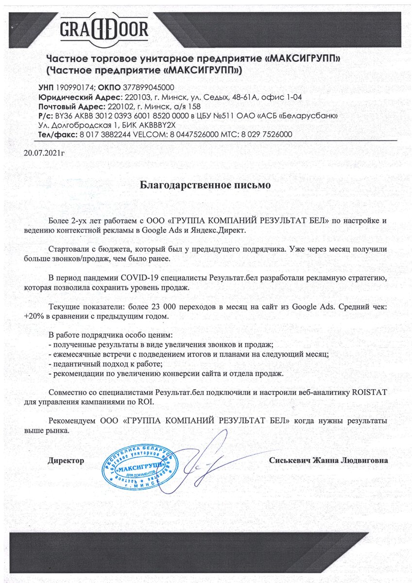 Ничто так не мотивирует покорять новые вершины, как отзывы наших клиентов! Мы — Результат.бел, а значит нацелены только на результат. Спасибо за обратную связь, продолжаем в том же духе!
