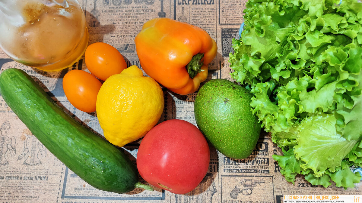 Здравствуйте, дорогие друзья! На улице разгар лета и стоит жаркая погода. Самое время покрасоваться в коротком и облегающем. Но не все решатся, да и вообще у меня нет знакомых, которые были бы довольны своей фигурой от и до! Наверное, стоит поголодать, сесть на диету, разгрузочный день устроить.. Но как быть, если весь день нужно быть в тонусе? Я, например, даже полдня не могу без еды,- начинаются головокружения и вообще становится плохо. Для себя я нашла такой выход - сытные и тонизирующие салаты на обед и ужин. Особо морочиться не надо, только нарезать( ведь у плиты сейчас тяжеловато стоять наготавливать). И все компоненты вполне доступны, все-таки лето! Читайте рецепт, а в конце расскажу что чем можно заменить, если вы не любите какой-то продукт. Ингредиенты: огурец - 1 шт. (200гр) красный помидор - 1 шт. (150гр) желтый помидор - 2 шт. (80гр) перец болгарский - 1 шт. (80гр) авокадо - 1 шт.(70 гр. без косточки) листья салата - несколько штук зелень петрушки - несколько веточек мас