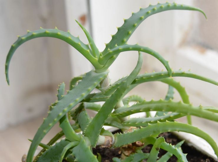 - Побеги вытягиваются из-за недостатка освещения. В этом случае алоэ может быстро утратить декоративность. Чтобы этого избежать, куст подсвечивают лампами, стараясь удлинить световой день.
