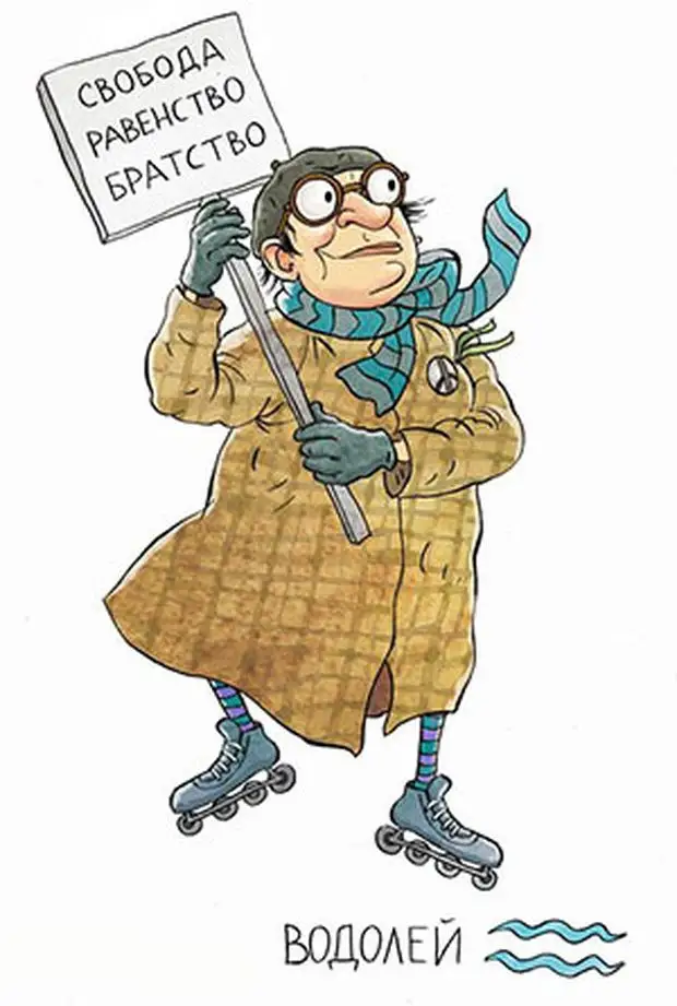 Итак,Водолей.Еще один зодиакальный триндец!)Какой совет можно дать людям,которые только только познакомились с Водолеем?Бегите!Как можно быстрее и как можно дальше...желательно уехать куда нибудь в Норвегию,где уж он вас точно не достанет..)Не успели?Тогда мои соболезнования.....Построить нормальные отношения с Водолеем априори невозможно,а если вам в голову залетит такая мысль -гоните ее прочь...возможно,вы перегрелись на солнце,или съели чего не того....раз такие мысли посещают вашу светлую голову)Водолей,друзья мои,-он и в Африке Водолей.Редко встретишь Водолея,ориентированного на вечные семейные ценности,в их планах,как минимум-покорить мир!"Вечно молодой вечно пьяный"..."ни семьи,ни Родины ни флага"-это все о нем!Сам не знает что хочет,в голове хаос и бардак,впрочем как и во всей жизни,ведь мы помним,что внутреннее = внешнее.Строить с ним какие то планы-это просто смешно...Если вы человек серьезный,правильный,практичный и целеустремленный-то жуткий стресс вам в таких отношениях обеспечен,к гадалке не ходи))Ваши планы постоянно будут разбиваться о фантастическую непредсказуемость этого знака зодиака!Ведь все Водолеи-оооочень харизматичные товарищи!)