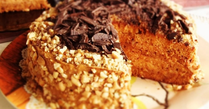 Этот вкусный фундучный торт со сгущенным молоком удовлетворит сладкоежку мужчину. Для приготовления этого торта вам понадобятся следующие ингредиенты - Мука, 2,5-3 чашки - Сахар, 1,5 чашки - 4 яйца - 1 чайная ложка пищевой соды - Уксус, 1 ч.л. - Коньяк, 50 мл; - Мед, 4 ст. ложки - Орехи, 100 г - Ванильный сахар, половина чайной ложки Для приготовления крема - Сливочное масло, 200 г - 100 г жареных грецких орехов - Вареное сгущенное молоко, 300 г - Шоколад и орехи для украшения Взбейте яйца и сахар вместе до получения густой и пушистой массы, добавьте ванильный сахар и снова взбейте. Просейте муку, добавьте ее в тесто партиями и перемешайте до равномерного распределения, затем добавьте пищевую соду, растворенную в уксусе, и перемешайте. С помощью скалки или блендера измельчите орехи и всыпьте половину из них в тесто, перемешивая до получения однородной массы. Выстелите противень пергаментом. Разделите тесто на две порции и выпекайте два коржа. Разогрейте духовку до
