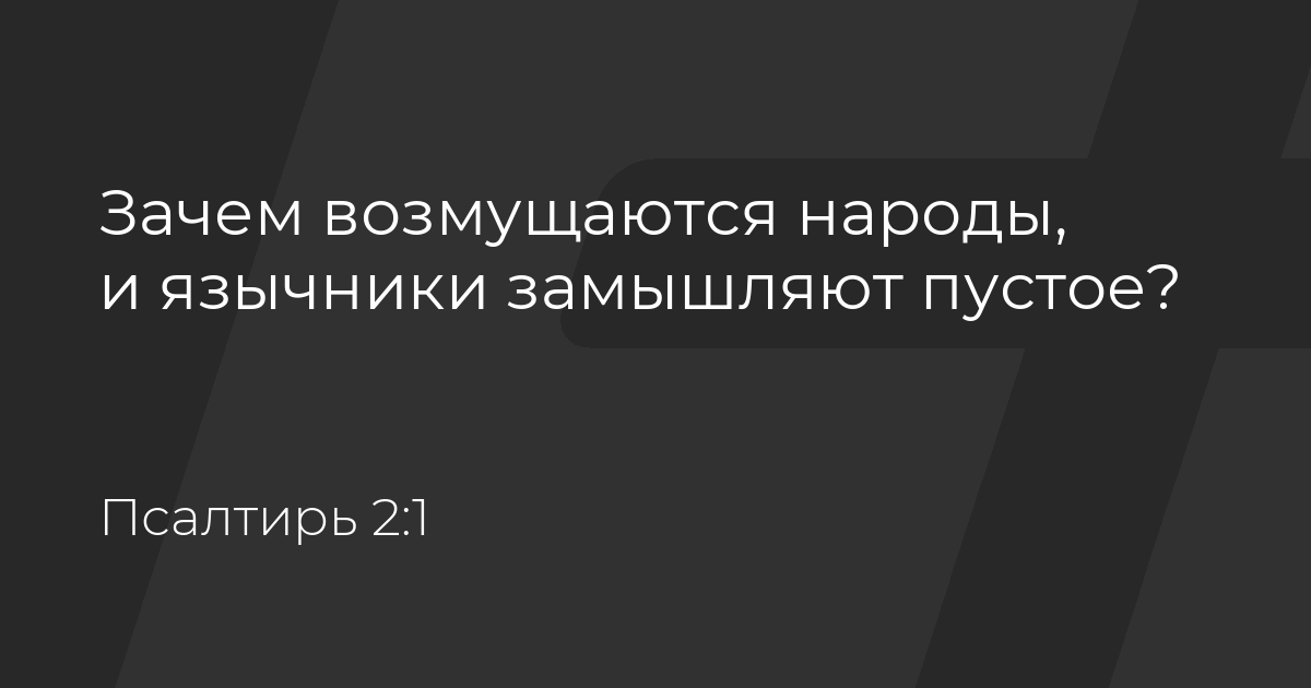 «Зачем мятутся народы, и племена замышляют тщетное? Восстают цари земли, и князья совещаются вместе против Господа и против Помазанника Его. “Расторгнем узы их, и свергнем с себя оковы их”» (ст. 1-3).