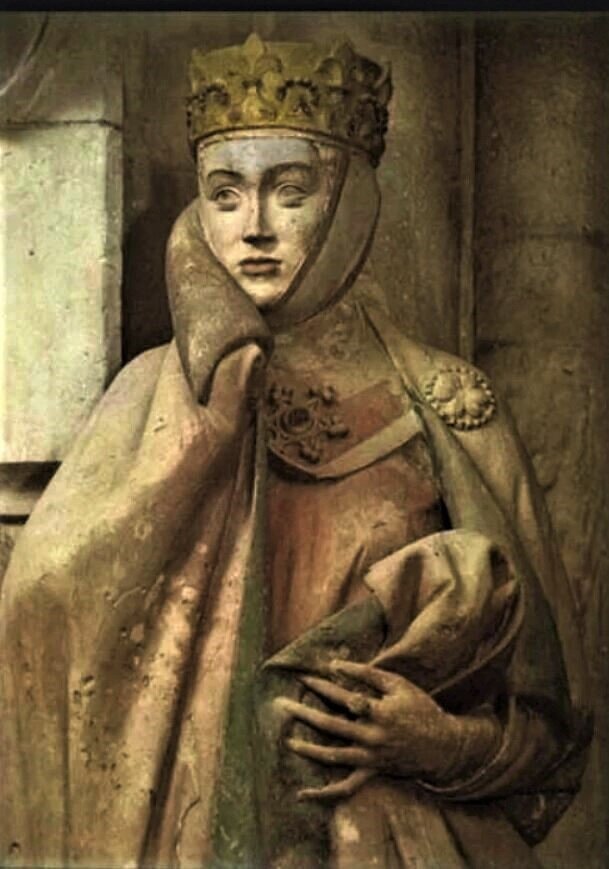 Впервые я увидела её изваяние много лет назад на иллюстрации к каталогу по истории искусства зарубежных стран, и образ мечтательной юной женщины, стоящей рядом со своим владетельным супругом и зябко кутающей нежное лицо в воротник плаща, прочно врезался в память.