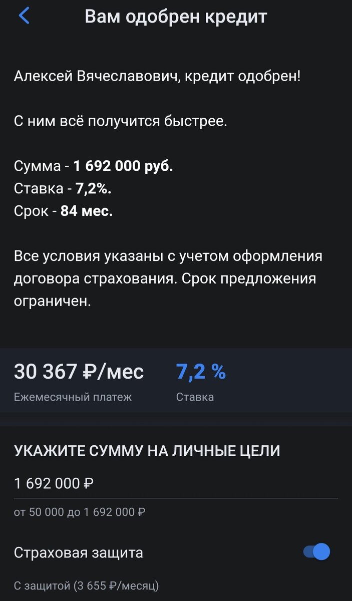 Многие из нас сталкивались с кредитами, а у кого то и сейчас они есть. Что наблюдается в последнее время. Процентные ставки падают и людям предлагают доступные для всех кредиты под низкий процент. Но так ли это на самом деле? Давайте разбираться. Обман везде Начнём с того, что уже давненько мне мой банк предлагает взять оооочень "выгодный" кредит аж под 7,2 % при ключевой ставке ЦБ 5,5%. Можно подумать ваууу, выгодное предложение, беру!. Но как бы не так. Снизу видно, что банк тут же предлагает страховую защиту, которая по сути себе бесполезная ибо если читать договор, то много неувязок и противоречий. Одно хорошо, что банк это прописал, но бывают случаи когда они это не пишут и не указывают. Что делать в этом случае? Считаем в кредитном калькуляторе Итак переходим на мой любимый сайт с кредитным калькулятором. http://calculator-credit.ru/ Забиваем все те же данные, что и банк. В моем случае: 1 692 000 руб 7,2% 84 мес. И получаем, что ежемесячный платёж будет не 30 367, а 25 703! Ну