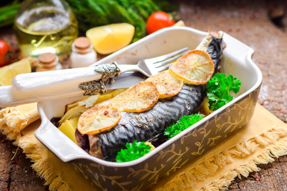 Скумбрия, запеченная в духовке с картошкой - простой рецепт