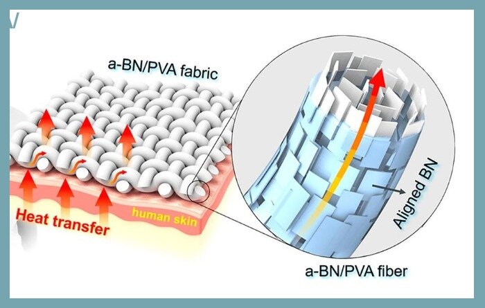 2. Ученые Мэрилендского университета (США) создали ткань, терморегуляция которой на 55% эффективнее, чем у хлопка. В материале использован нановолоконный композит, в состав которого входит нитрид бора и поливиниловый спирт. Ткань охлаждает за счёт вывода тепла наружу. Тоже можно выпускать, печатая на 3D-принтере.