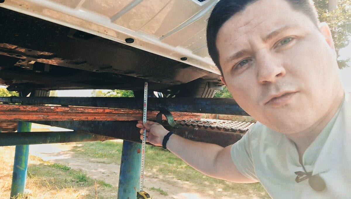 Чтобы замерить реальный клиренс, я загнал машину на эстакаду, взял специальные инструменты в виде дощечки и рулетки, залез под машину и измерил. Причем, померил не только под картером, но и под низко висящим глушителем и бензобаком.