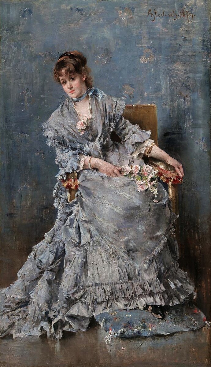 Элегантные героини художника Альфреда Стивенса более похожи на загадочные видения, нежели на живых людей. В них воплотились идеализированные представления мастера о парижской богеме середины-конца XIX века. Они — словно прекрасные призраки минувшего, пребывающие в нашей несовершенной реальности исключительно по прихоти живописца. Готовые растаять прямо в воздухе от любого нечаянного движения и звука. При этом их одеяния (по меркам эпохи) стильны, украшения — гламурны, а на лицах мелькают тени вполне земных страстей. Удивительное сочетание высокого и приземлённого, не правда ли? Знаете, дорогой читатель, как это бывает? Тонкая натура творца требует созидать высокое искусство, но оставаться правдивым. Вот и Стивенс пишет эстетику ради эстетики, но не потому, что ему нечего сказать своему зрителю, а потому, что нечего сказать его прекрасным дамам. Сияющим внешней красотой, но зияющим изнутри отсутствием индивидуальности... Тем приятнее любоваться полотном Стивенса, «выбивающимся» из этой