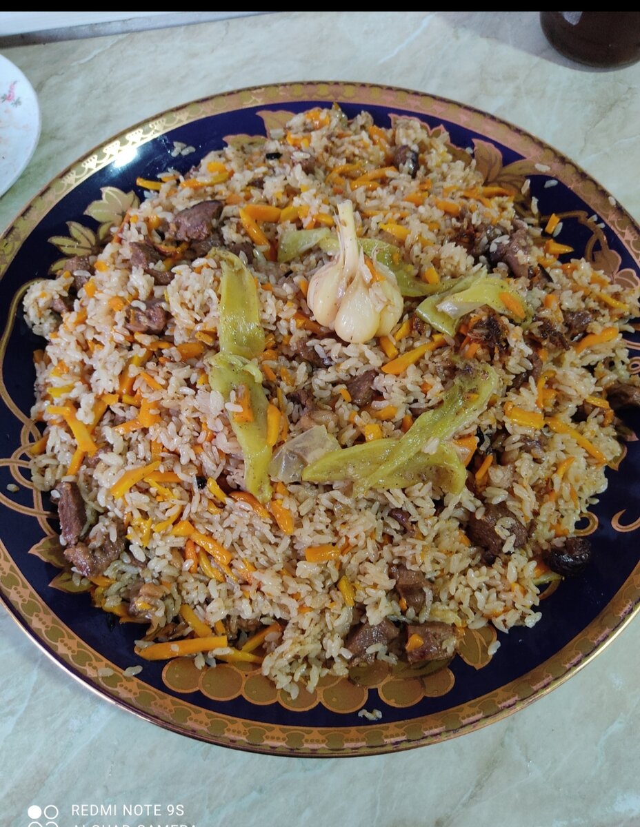 Рецепт плова : Растительное масло Мясо - 500 гр Лук - 3-4 шт Морковь - 500 гр Вода Рис - 300-400 гр Готовим : На растительном масле жарим мясо , добавляем лук и жарим до золотистого цвета , добавляем морковь и жарим , пока морковь не станет вялой , добавляем соль , куркуму пожеланию и добавляем воду так , чтобы покрывала морковь , оставляем тушится на среднем огне при открытой крышке 20-30 минут , рис нужно замочить за 20 минут до добавления. Добавляем рис и воду так , чтобы вода покрывала рис. Ждём до испарения воды , убавляем огонь до минимума. Деревянной палочкой сделать отверстия (рис и мясо не перемешивать) для выхода пара. Готовить под крышкой до готовности (около 20–25 минут). При подаче все перемешать.