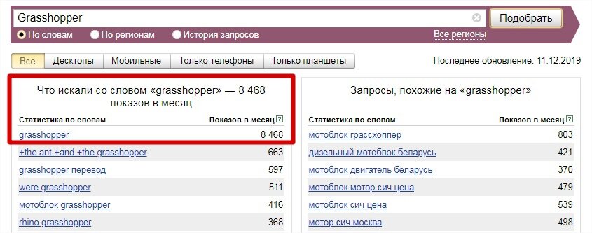 — Студенты Архитектурных учебных заведений Ранее мы настраивали для этой школы таргетированную рекламу ВКонтакте для наборов на бесплатные вебинары и мини-курсы. Сейчас перед нами встала задача создать дополнительный приток учеников с поисковых запросов в Yandex и Google. Первостепенная задача была найти новых учеников на курс по Grasshopper — узкая тематика, сейчас вы сами убедитесь, когда увидите сколько запросов выдаёт WordStat: и это на весь Yandex, учитывая что по Grasshopper так же запрашивают музыкальную группу и узнают перевод слова «Кузнечик»