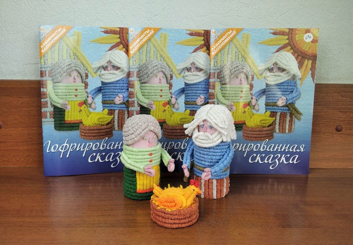 В издательстве "Формат-М" вышла книжка про поделки из гофротрубочек. В ней собраны объёмные работы, созданные на основе картонных втулок и основ из бумаги и салфеток. Поделки плоские, выполненные как аппликация, собраны в январском журнале "Радуга идей", Его можно посмотреть тут. На обложке - дед, баба и курочка. Как сделать фигурки героев сказки, подробно рассказано в книжке. Это совсем не сложно. Ручки у фигурок подвижны, деду и бабе можно дать подержать курочку. Дед и баба могут быть героями и других сказок, тогда сделаем им Снегурочку или золотую рыбку... И у вас получится маленький домашний театр! А ещё в книжке есть лисёнок, котик, ёжик, птичка-синичка, ёлочка, девочка-первоклассница и космонавт с ракетой! Это разворот с дедушкой. А это про бабушку. Тут как сделать лисёнка. Здесь делаем ёжика с яблоками. И космонавт! Книжку и журналы по рукоделию можно купить на сайте издательства. А тут сказочка про книжку, дедушку, бабушку и курочку. Как сделать гофротрубочку Бумага для