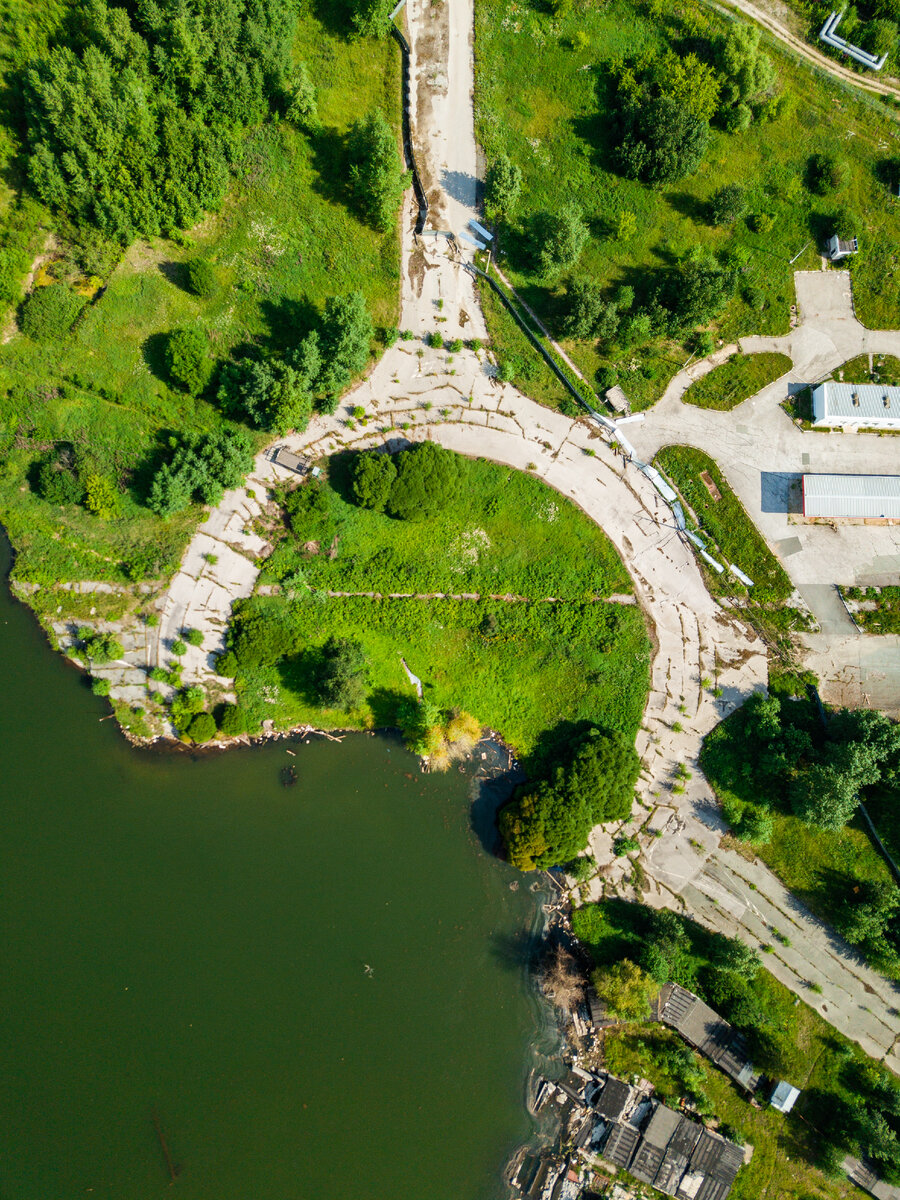 В настоящий момент данные провалы огорожены парой периметров и находятся на охраняемой территории. Но мы можем взлететь и увидеть, что же там сейчас находится. Если честно картинка открывается не очень понятная. Тяжело понять, что здесь сейчас происходит. Но можно увидеть место большого провала. Никаких следов СНТ здесь уже не осталось. По ощущениям провал как будто пытаются чем-то залить или засыпать.