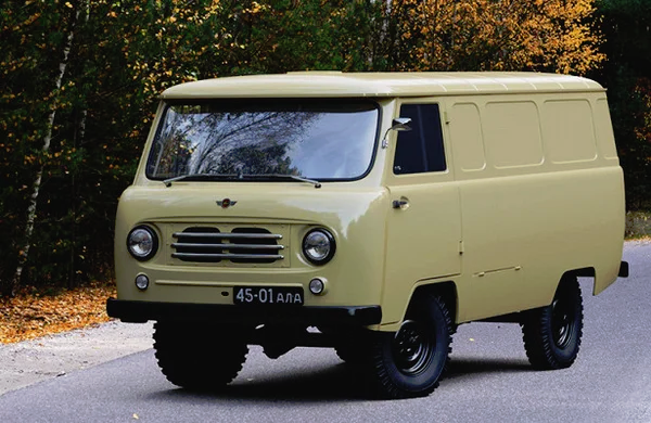 УАЗ-450 стал революционной моделью советского автопрома, это был первый автомобиль вагонной компоновки с полным приводом способный перевозить до 11 пассажиров или 800 кг груза. Машины первой серии боковой двери не имели, в наличии были только задние распашные, передние водительская и пассажирская, которые открывались по ходу движения. Модификация фургон стала базовой, но не единственной. После начала массового производства, завод приступил к выпуску санитарных УАЗ 450А первые из которых ушли в армию. Уже в 1959 году 35 экземпляров были отправлены на экспорт в Албанию Индонезию и Сирию. В 1958-ом появилось еще 2 модификации. Особого внимания заслуживает небольшой бортовой грузовичок УАЗ-450Д, его можно считать первым советским бескапотником среди грузовиков. Правда перевозить он мог всего 800 кг, шоферы прозвали эту машину «головастиком». Появился еще и микроавтобус 450В. Был выпущен экспериментальный седельный тягач УАЗ-450П способный тянуть прицеп массой 2.5 тонн, но в серию машина н