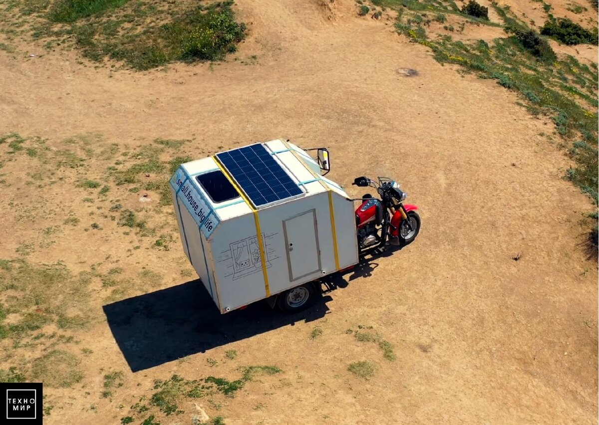 С огромной радостью приветствуем каждого кто зашел на канал Техно-Мир! Сегодня вы узнаете ещё про одно удивительное изобретение из мира технологий. Поставьте лайк и подпишитесь на канал. Это продвинет наш канал и статью прочитают как можно больше человек. Спасибо! Героями сегодняшней статьи стала молодая пара из России и их самодельный дом на мотоцикле. На нём они уже проехали достаточно километров и посмотрели много разных мест. Мы решили рассказать: Как им удалось реализовать эту идею и сколько денег было потрачено. Материал и их закупка Первым делом хозяин данного изобретения купил трицикл(трёхколестный мотоцикл), модель специально подобрана грузовая, чтобы было можно поместить на него мини-дом. Сергей, так зовут автора проекта, всё делал самостоятельно, закупая материал вместе с отцом. Потрачено: Итоговая цена на покупку и ремонт трицикла = 65 076 руб. Проектирование Сергей также это делал самостоятельно. Самое интересное это жилой модуль. В котором спокойно помещаются два челов