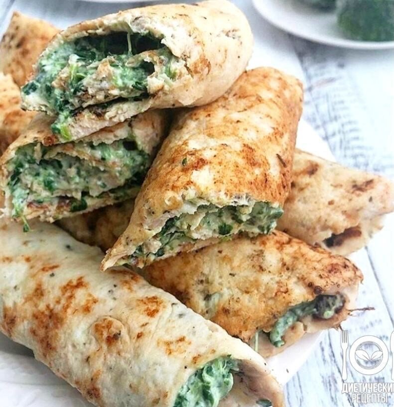 Куриные рулеты со шпинатом🐔 Ингредиенты: 🔹 800 гр куриного филе 🔹 2 яйца 🔹 300 мл молока 🔹 Базилик 🔹 Соль 🔹 40 гр кукурузного (картофельного) крахмала ⠀ Начинка на 4 штуки (300 гр): 🔹 65 гр готового шпината 🔹 100 гр творожного сыра Приготовление: Готовим куриные блины. 1 Помещаем все ингредиенты в глубокую чашу блендера и перемалываем до однородной массы. Должен получится жидкий фарш. 2 Берём антипригарную блинницу. Если сковорода не новая, слегка смазываем ее маслом в первый раз и наливаем фарш, на предварительно разогретую поверхность. 3 Жарим блин минуты 4 с одной стороны и также со второй. В блины заворачиваем начинку. Для этого: 1 Обжариваем минут 5 шпинат. Без масла, также на а/п сковороде. ▫️Можно добавить немного кипятка, либо предварительно разморозить шпинат. ▫️Смешиваем его с творожным сыром, добавляем по вкусу соль. 2 Нашей вкусной начинкой промазываем блинчики. 🔹 на 100грамм - 113.16 ккал 🔹 Б/Ж/У - 15.26/3.72/3.78🔹 Приятного аппетита!