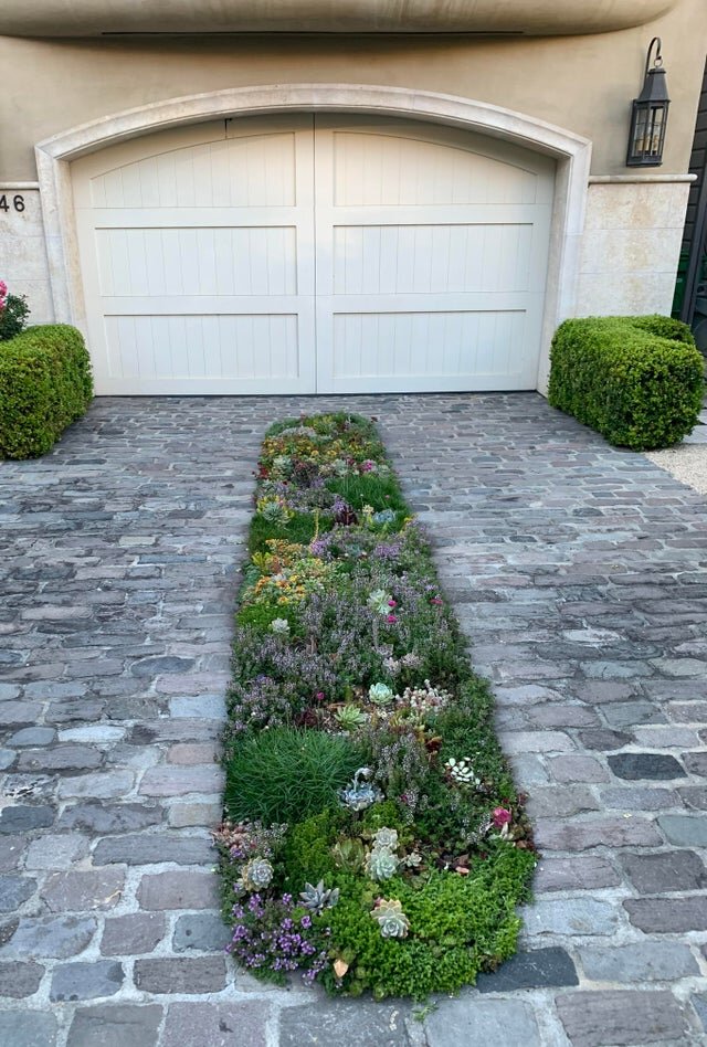 Лента околоподъездной дороги имеет чудесный сад в ней