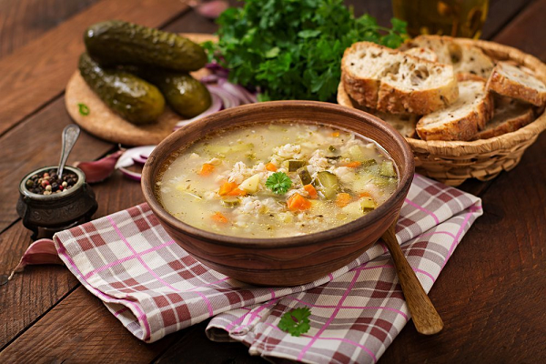 В старину рассольник подавали как в трактирах в самом простом народном исполнении, так и к барскому столу в изысканных вариациях. Парадный вариант был довольно богатый – варили его из говяжьих ребер и телячьих почек, с сушёными грибами, мелкой картошкой, жареной мукой и крупно резанной капустой, а заправляли желтками и сметаной.