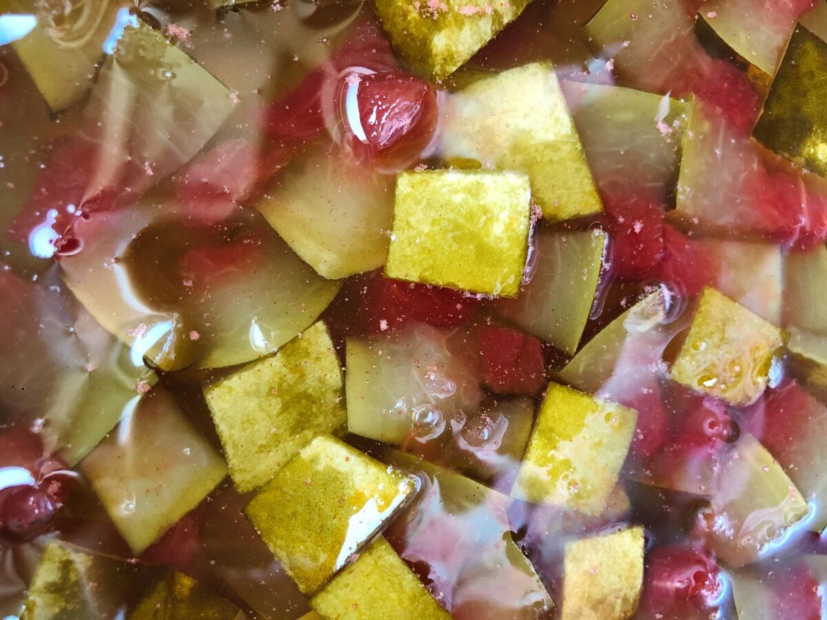 Чтобы сварить из них варенье по достаточно простому рецепту. Нам понадобится: Варим варенье 2 дня, но потратим на все не более 60 минут. День 1 Нарезаем арбузные корки кубиками. Если не нравится верхний слой корки, то счищаем его. Взвешиваем все кубики, чтобы понимать, сколько воды, сахара и лимонов добавлять. Из воды, ванили, сахара и лимона делаем сироп. ВНИМАНИЕ! Лимон не обязателен, он служит в рецепте для того, чтобы предотвратить карамелизацию сиропа. Ставим сироп на плиту, доводим его до кипения и кипятим 5 минут на сильном огне. Затем добавляем в сироп кожуру и снова доводим до кипения. Уменьшаем огонь до среднего и варим варенье 40 минут периодически помешивая. Снимаем с огня, накрываем марлей и оставляем остывать до следующего дня. День 2 Проверяем, что у нас получилось. Корки в варенье должны стать мягкими и прозрачными. Снова ставим на огонь и варим 15-20 минут. Обязательно проверяйте сироп! Не дайте ему карамелизироваться! Но если это случилось, то не переживай