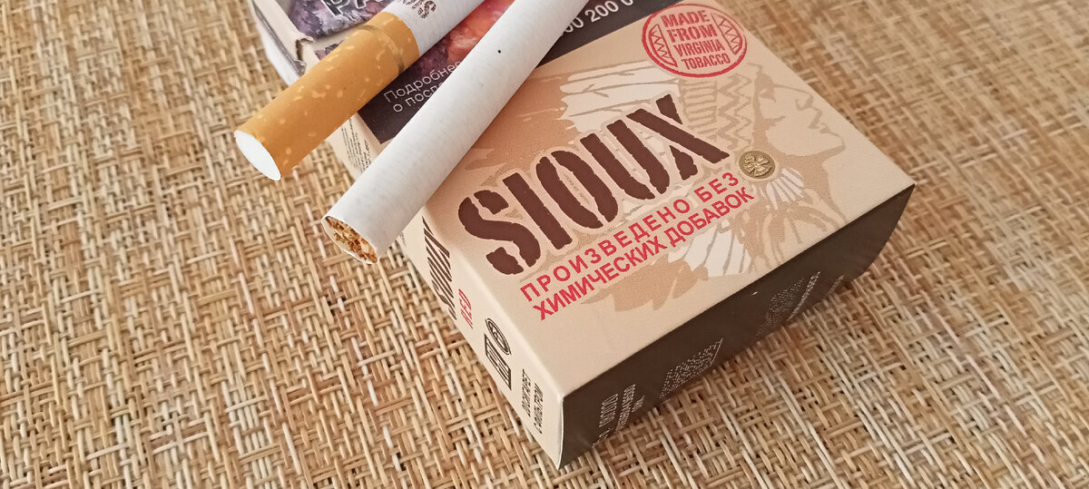 Добро пожаловать! Сегодня для Вас, мои уважаемые друзья, все варианты немецких сигарет Sioux. Внимание! Курение вредит вашему здоровью. В качестве вступления. Все обзоры - это сугубо личное мнение автора. Присаживайтесь поудобнее, мы начинаем. Sioux Red (Рэд) KingSize. Производитель. "von Eicken", Германия. Цена. 185 руб. МРЦ от 08.2020. Куплены в табачном интернет-магазине SuperTabak.ru Могли подорожать, ведь всё меняется, если это так - пишите, пожалуйста, об этом в комментариях. Дизайн. ТТХ. Сигареты формата KingSize 84, в пачке 20 штук. Ацетатный фильтр - оранжевый, бумага гильзы - белая. Вес сигареты - 0.87 гр. Дегустация. Неплохой табак, с кислинкой и терпкими нотами. Сигареты крепкие. Выкуривается за 10-12 затяжек. Фильтр при курении не деформируется. Послевкусие табачное, с легкой кислинкой. Дискомфорта после курения нет. Оценка - Удовлетворительно. Sioux Blue. Производитель. Von Eicken, Германия. Цена. 185 руб. МРЦ от 08.2020 Sioux Blue. Дизайн. TTX. Сигареты формата KingSiz