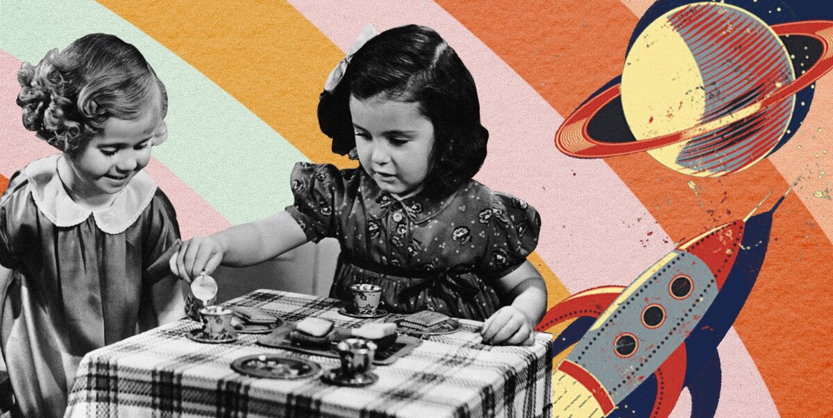 Несколько лет назад, когда я планировала, что подарить ребенку на Новый год, я увидела его — набор крошечной мебели, посуды, одежды и других предметов, предназначенных семье миниатюрных котов, одетых в рубашки, брюки и платья тончайшей работы. Я смотрела на них и думала: если бы только они были в моем детстве, я бы играла ими не переставая! Потом меня осенило: ведь я могу это делать прямо сейчас, на совершенно легальных основаниях, у меня же есть дочь! Я представляла себе, как я буду перебирать все эти маленькие вещицы, переодевать котят, «кормить» их, покажу ребенку, какие варианты игры с этим чудесным набором можно придумать. И знаете, что? После того, как он у нас появился, я к нему не притронулась! Я хотела играть этими котами тогда, в далеком детстве — но увы, фарш невозможно провернуть назад. Или возможно? Есть версия, что родители ненавидят играть с детьми потому, что сами уже все это проходили — мы уже притворялись мамами и дочками, прыгали через скакалку, делали во дворе «сек