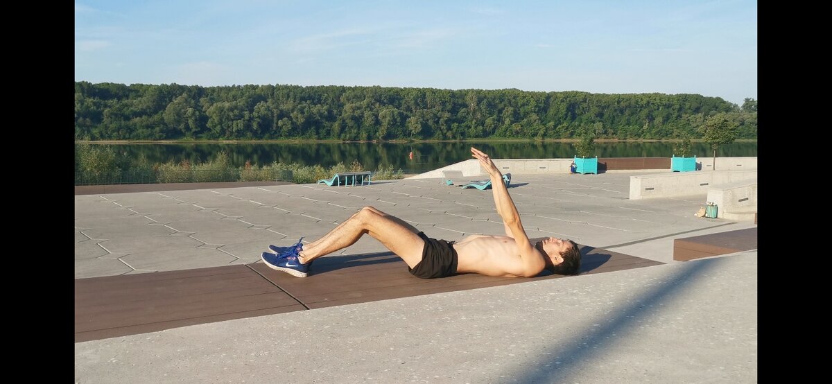 Первым предлагаю выполнить классическое упражнение, при выполнении которого есть очень пояснение. Из положения лёжа на спине с согнутыми ногами как на картинке, важно отрывать от пола только плечи до лопаток, потому как поднимание поясничного отлела не несет никакого функционального значения. Для контроля двидения достаточно вытянутыми вперед руками касаться колен. Вторым упражнением выполним горизонтальные скручивания. В этом движении так же важно исключить из работы поясничный отдел, оставляя его лежащим на полу. Для простоты понимания, лежа на спине нужно только потянуться пальцами рук до стопы. В третьем упражнении из упора лежа, просто сгибайте ноги поочерёдно коленом до локтя. Номер 5, "Планка". И шестое, заключительное, упор лежа прогнувшись. Часто слышал что это положение называют "Стойка кобры" Выполняйте эту стойку неспешно, стараясь держать грудь колесом, голову тяните вверх, а пупок тяните вперед вниз к полу, расслабляя поясничный отдел.