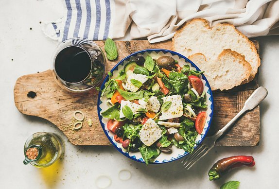 соль по вкусу Капусту нарезать соломкой, лук, помидоры, яйца и огурец мелко нарезать кубиками, все сложить в миску и добавить каперсы и чайную ложку орегано. В другой миске смешайте все ингредиенты для заправки и вылейте в миску с салатом, перец и соль (по вкусу). Оливки разрезать пополам, добавить в салат и снова перемешать. Дайте остыть в холодильнике и добавьте нарезанную кубиками фету поверх салата перед подачей на стол. Не знаю почему этот салат называют у нас греческим? В Греции меня угощали греческим салатом. И в нем были крупно нарезанные, буквально пополам, огурец, крупный помидор, луковица и конечно оливки целые. Оливки такого качество у нас найти не получилось. Так что если будете в Греции, купите их побольше. Они также могут быть отличным подарком для ваших друзей.