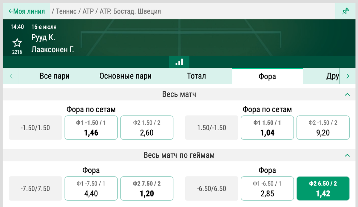 16 июля, ставка дня! Теннис / ATP / ATP. Бостад. Швеция / Рууд К. - Лааксонен Г.
