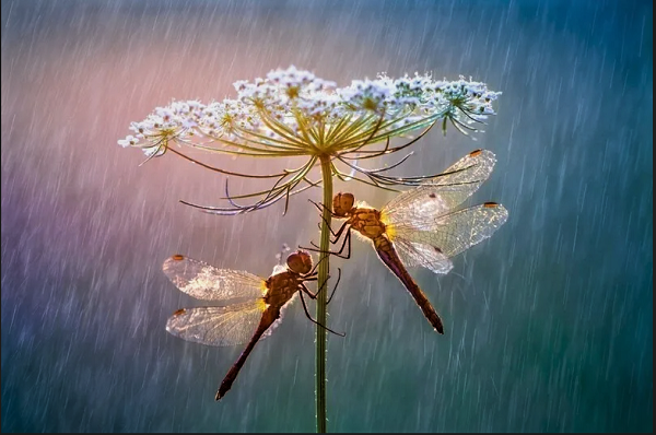 Стрекозы летают большими стаями-в ближайшие 1-2 часа ожидается дождь; летают большими стайками низко и рывками- к урагану или сильной грозе;массовое появление молодых стрекоз-начинаются летние дожди и холода;стрекозы летают высоко и плавно-будет хорошая погода.