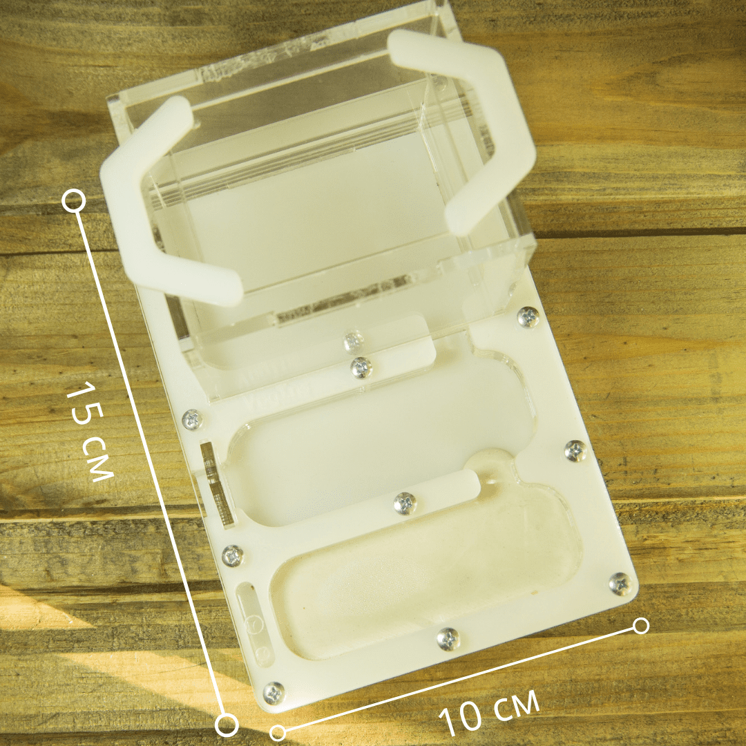 Горизонтальная муравьиная ферма VI mini-1. В этой ферме мы реализовали всё, что действительно необходимо начинающему мирмикиперу: ✅ 1. Открытая арена и высокая арена(доступность кормления семьи и уборки жилища)(6х8х7 см). ✅ 2. Сменяемые заглушки (возможность удобного переселения колонии). ✅ 3. Продолжительная автономность (до 1 недели) ✅ 4. Удобные и компактные размеры (1,5х1х1,8 см). ✅ 5. Приличная вместительность (~200-250 особей). ✅ 6. Гипсовый слой, равномерно распределяющий и задерживающий влагу внутри фермы. ✅ 7. Заселение от 25 рабочих муравьев. ✅ 8. Герметичность конструкции (возможность побега муравьев сведена к нулю). Подробнее о ферме в видео: