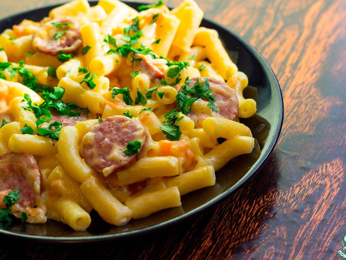 Макароны с копчёными колбасками и приятным соусом из сливок и помидоров готовятся быстро. Благодаря соусу обычные макароны становятся нежными, сочными и очень вкусными. Копчёные колбаски, чеснок и базилик добавляют блюду аппетитный аромат, а сыр - только усиливает его сливочный вкус. Ингредиенты : Чеснок мелко порубите.